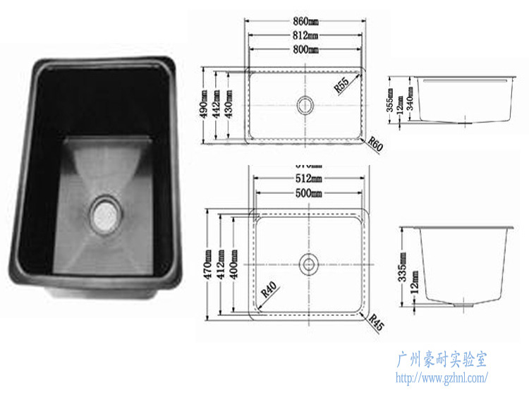 水槽由耐腐蚀性极好的PP材料制造.标准颜色是高光黑。
